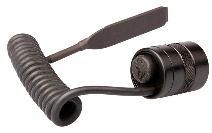 Витой шнур растягивается, позволяя варьировать длину, и подходит практически для всех ружей и карабинов. Кнопка включения также продублирована на торце корпуса, имеет фиксацию нажатия и служит для постоянного включения фонаря аналогично штатной кнопке, поставляемой с фонарем.