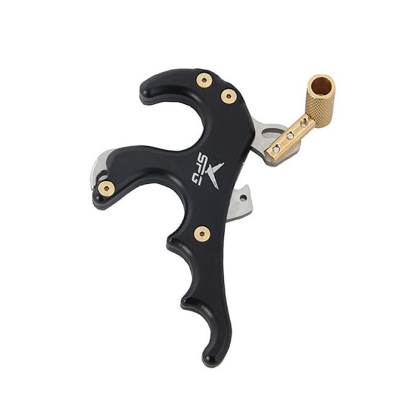 Т-образный релиз. Зацеп релиза фиксируется рычагом на задней части релиза. Спуск осуществляется нажатием на крючок в верхней части релиза. Релиз имеет регулируемый спуск.