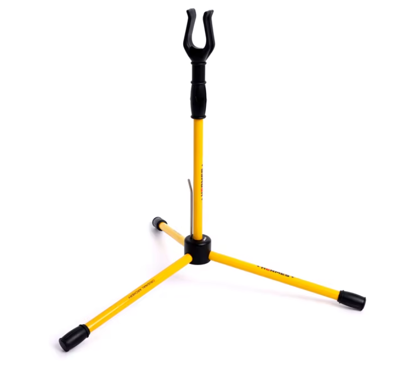 Подставка для классического лука - обязательный аксессуар для спортивной стрельбы. Позволяет размещать лук, не упирая его аксессуары в пол или землю. Подставка Decut Honor, Ножки вкручиваются в стойку, имеется фиксатор тетивы, для рукоятей с упором.