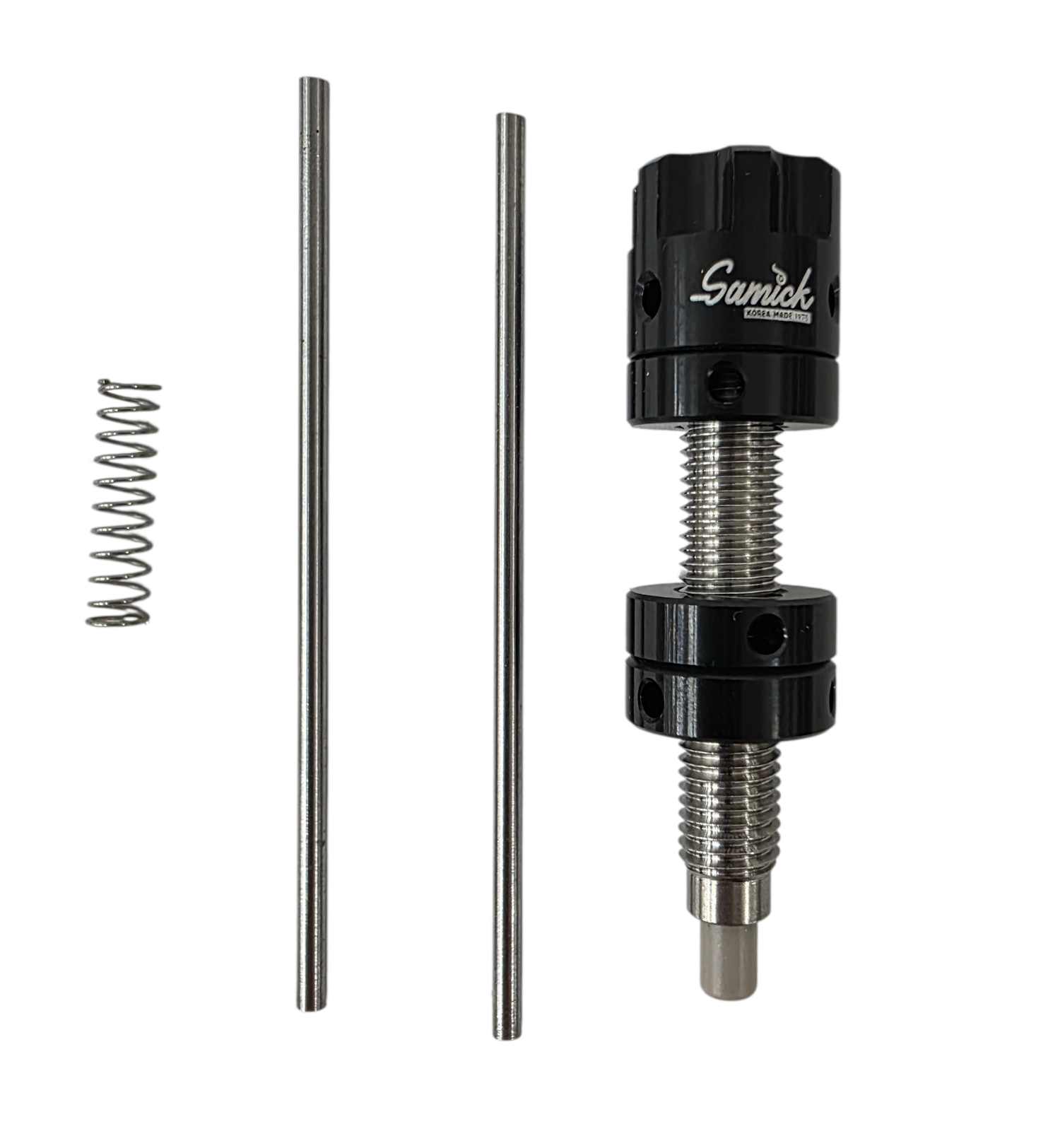 • Механизм регулировки: friction‑fit (посадка с трением) — позволяет настраивать жёсткость пружины и глубину плунжера без фиксирующих винтов.